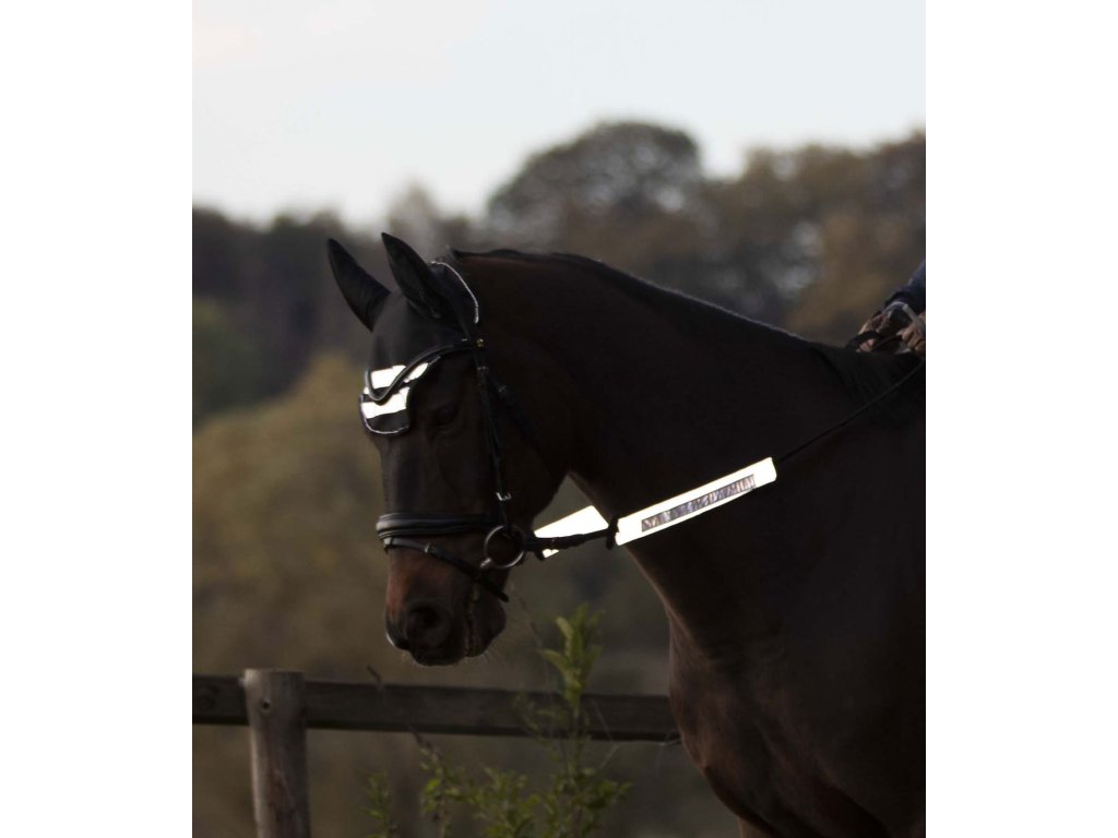 Sada 3 vysoce reflexních krytů se stříbrnými světelnými proužky.Velmi snadno se připevňují na uzdečku a otěže.REFLEXNÍ předměty pro koně a jezdce - Bezpečnost v noci a v mlze. Pro dobrou "viditelnost" ve večerních hodinách: Naše výrobky zajišťují větší bezpečnost a viditelnost koně a jezdce ve tmě.