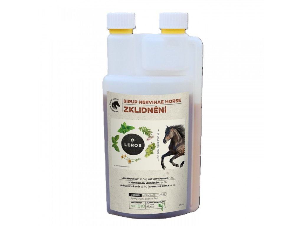 Leros Nervinae Horse je bylinný sirup speciálně vyvinutý pro zklidnění koní. Jeho účinné složení podporuje rovnováhu nervové soustavy a pomáhá snižovat podrážděnost, napětí a přehnané reakce na rušivé podněty. Díky obsahu tradičně využívaných bylin, jako je kozlík lékařský, meduňka, heřmánek či chmel, přispívá k celkovému uvolnění a pohodě koně. Sirup se snadno podává zamícháním do jádrového krmiva. Není vhodný pro užívání u závodních koní v průběhu sezóny.