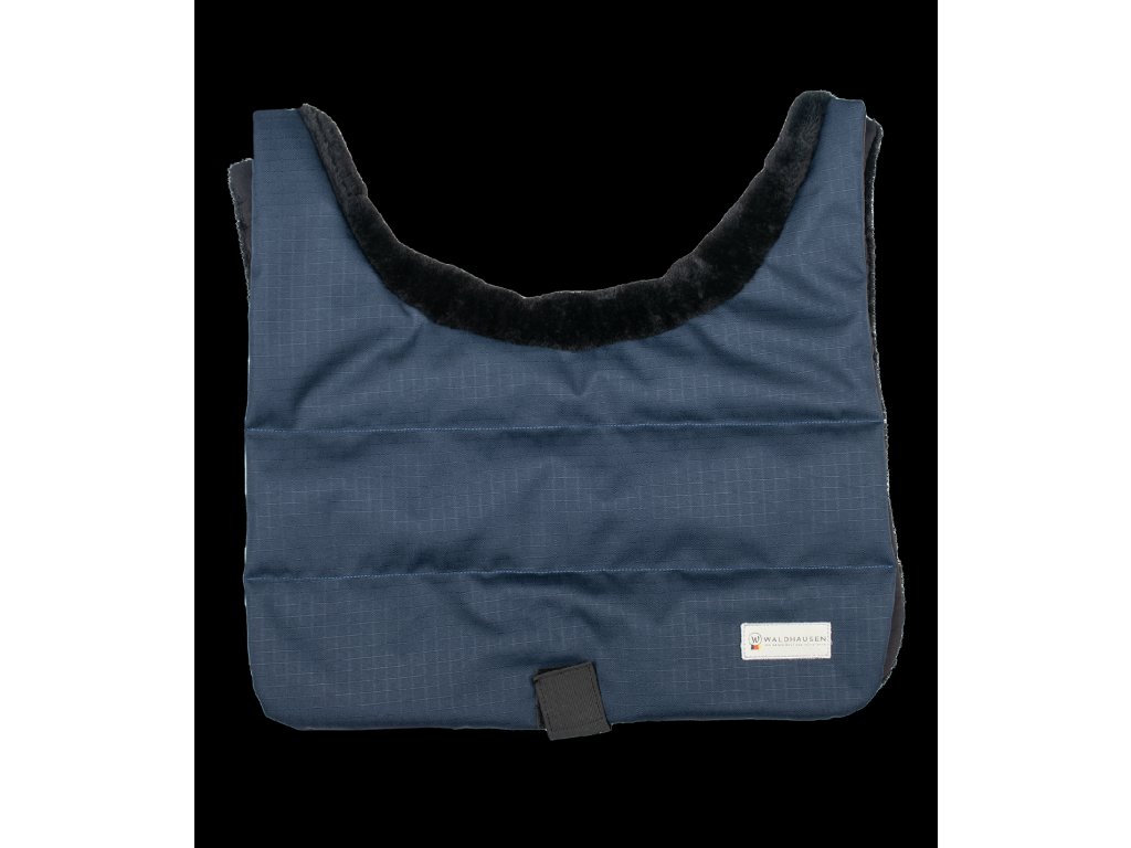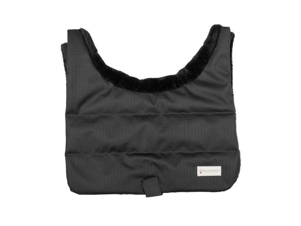Chránič hrudníku Waldhausen slouží jako spolehlivá ochrana před odřeninami a otlaky, které mohou vznikat při dlouhodobém nošení deky. Je vyroben z odolného materiálu a na vnitřní straně je opatřen měkkou umělou kožešinou, která je příjemná k pokožce koně. Chránič se upevňuje pomocí suchého zipu a lze jej snadno umístit mezi deku a hruď. Je vhodný pro většinu standardních dek.
