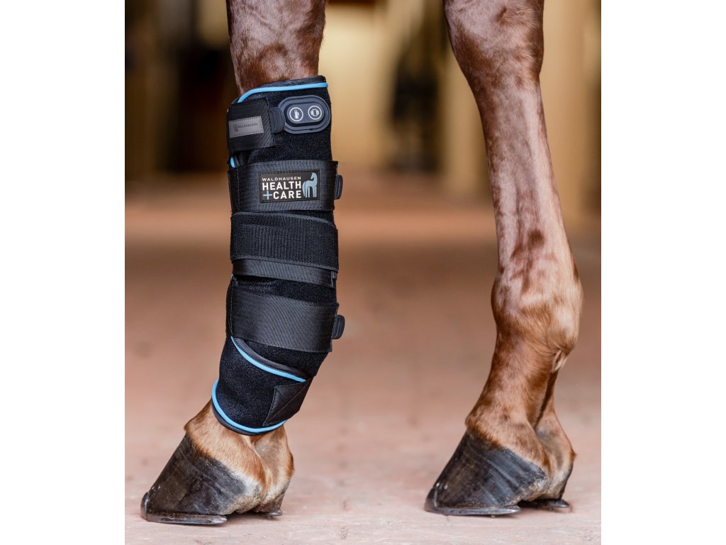 V případě zranění, pro zahřátí a uvolnění nebo po sportovní zátěži podporuje nová kamaše Waldhausen Health & Care od společnosti Waldhausen regeneraci koňské nohy pomocí 3 funkcí - vibrace, chlazení nebo zahřívání. V případě poškození šlach může kamaše Waldhausen Health & Care podpořit opětovné nastavení šlachových vláken během fáze hojení. Pružná chladicí funkce kamaše má protizánětlivý účinek. Pokud je současně aktivována vibrační funkce, může kamaše minimalizovat otoky a aktivovat krevní oběh v noze.
