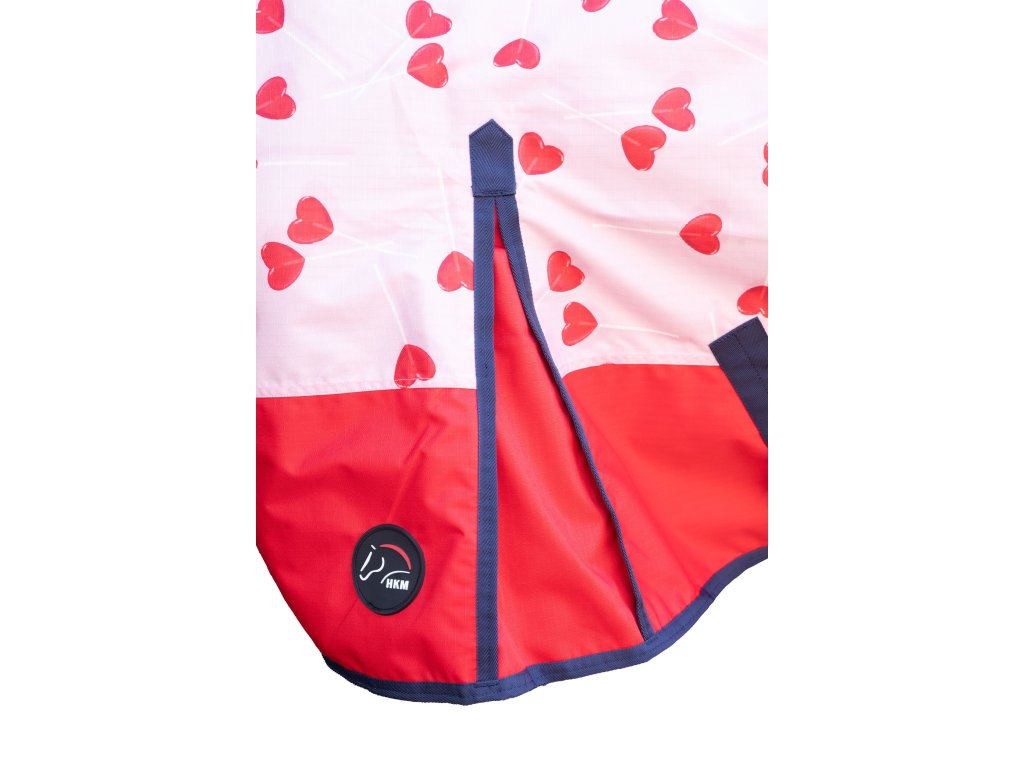 Deka výběhová Lollipop 600D 100 g HKM – růžovo-červená se srdíčky