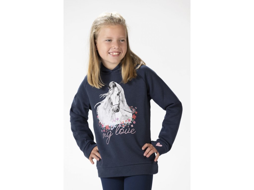 Krásná mikina s kapucí a obrázkem koně potěší každého mladého jezdce.