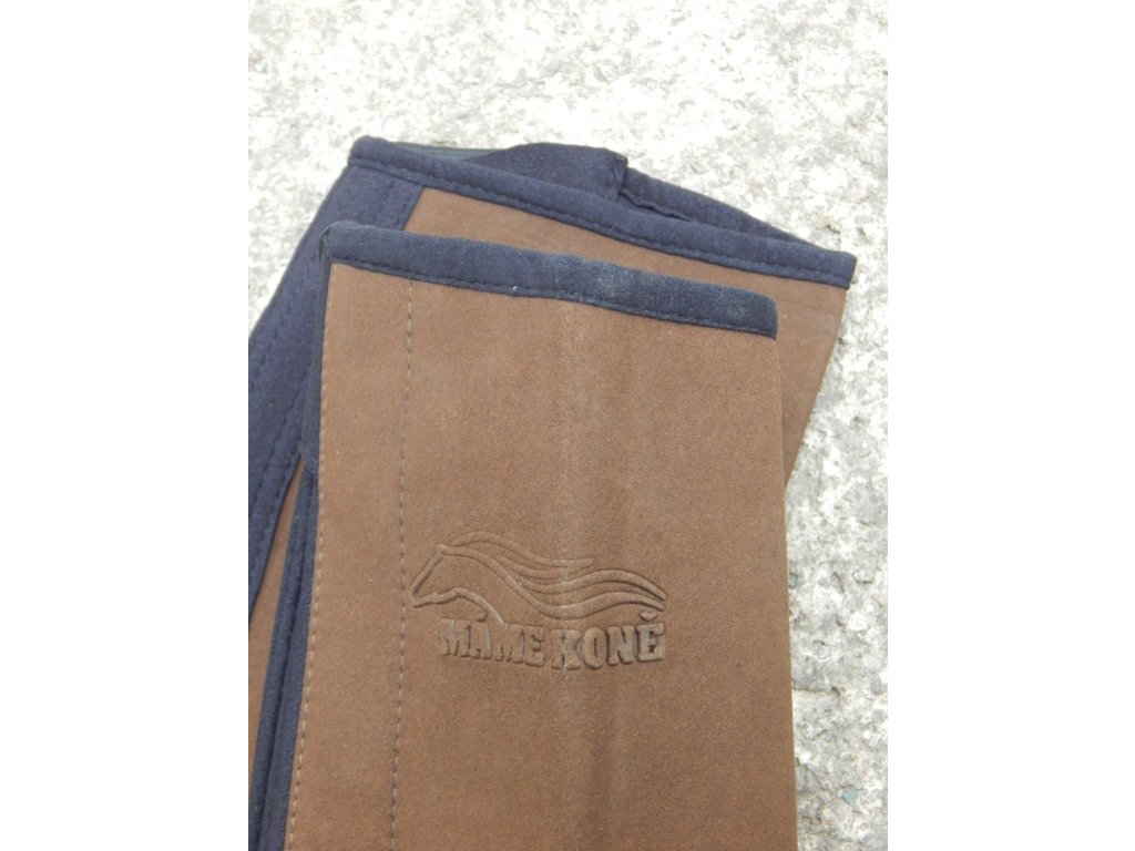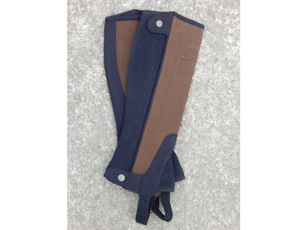 Dvoubarevné syntetické minichapsy s gumovou vsadkou jsou navrženy pro pohodlné každodenní nošení při ježdění. Odolný syntetický materiál se snadno udržuje, je lehký a dobře přilne k noze. Pružná vsadka se přizpůsobí lýtku a zajistí volnost pohybu. Dvoubarevné černohnědé provedení dodává elegantní vzhled. Nabízené velikosti od XS po XL vyhoví různým typům postav.