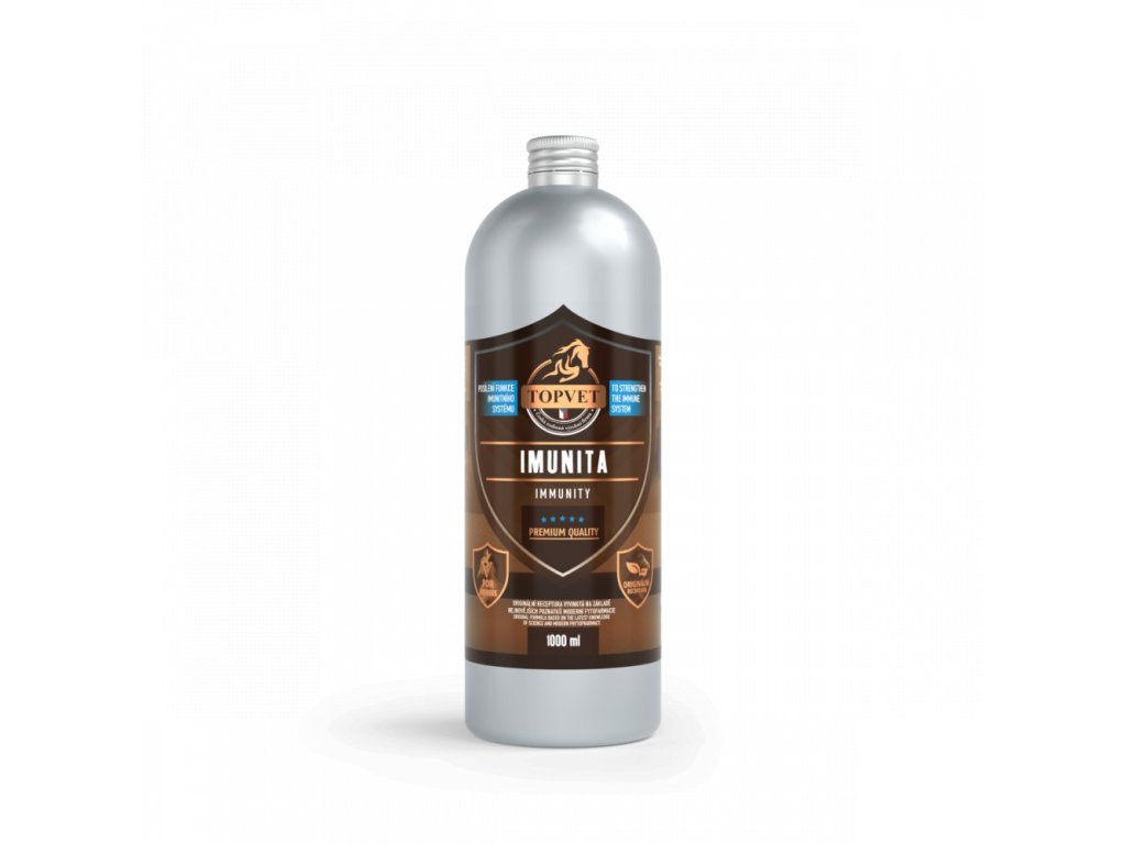 TOPVET Imunita sirup 1000 ml je přírodní doplněk výživy pro koně, který účinně stimuluje a posiluje imunitní systém. Obsahuje extrakty z echinacey, rakytníku, šípku a dalších bylin známých svým příznivým vlivem na obranyschopnost organismu. Vhodný je zejména při zvýšené fyzické nebo psychické zátěži, změně prostředí, po nemoci nebo během období s vyšším výskytem infekcí. Tekutá forma zajišťuje snadné podání i vysokou vstřebatelnost.