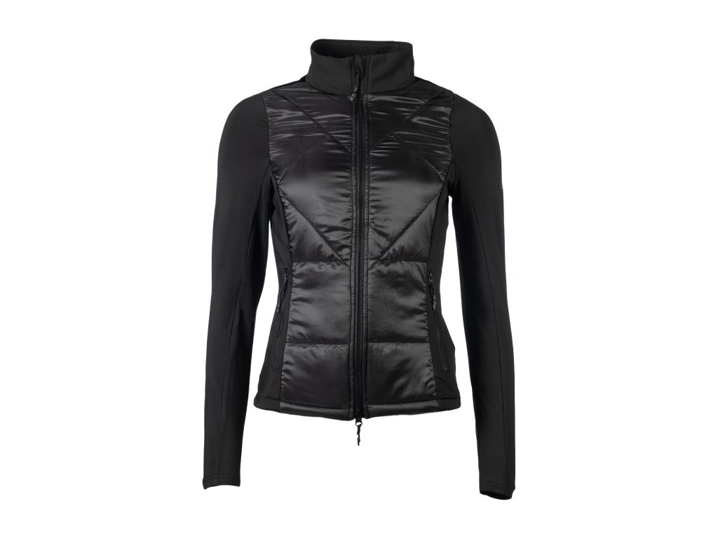 Černá varianta jezdecké bundy Prag II od HKM je nadčasová a snadno kombinovatelná. Díky elastickým bočním dílům a vypasovanému střihu poskytuje komfort i při aktivním pohybu. Je lehce zateplená měkkou výplní, vhodná na každodenní nošení i do stáje. Obousměrný zip, dvě kapsy na zip a stojáček chránící proti větru z ní dělají praktickou volbu pro každého jezdce.