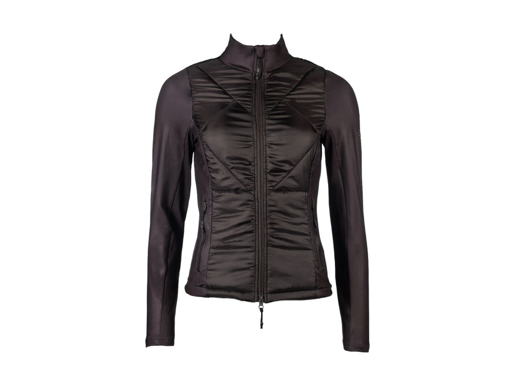 Tmavě hnědá bunda Prag II – Style HKM je skvělou volbou pro jezdce, kteří hledají kombinaci elegance a funkčnosti. Je vyrobena z prodyšného materiálu s měkkou výplní, která poskytuje příjemné zateplení. Vypasovaný střih spolu s elastickými bočními díly zajišťuje volnost pohybu i při ježdění. Doplňuje ji obousměrný zip, dvě kapsy na zip a praktický stojáček proti větru.