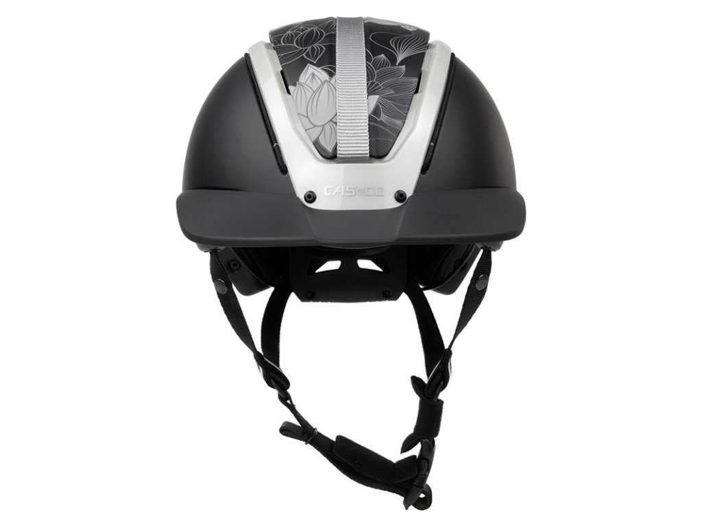 Helma Casco DUELL one Lotus je ideální volbou pro jezdce hledající spojení stylu, pohodlí a bezpečnosti. Design kombinuje matné černé boky, lesklý kovový střed a nubukovou kůži s květinovým potiskem lotosových květů. Ergonomický tvar a systém Disk-fit Vario umožňují horizontální i vertikální nastavení pro dokonalé přizpůsobení. Ventilační systém s hliníkovou síťkou proti hmyzu zajišťuje optimální proudění vzduchu. Vnitřní podšívka z mikrovlákna je odnímatelná a pratelná, což usnadňuje údržbu. Helma splňuje bezpečnostní normy EN 1384 a VG1.