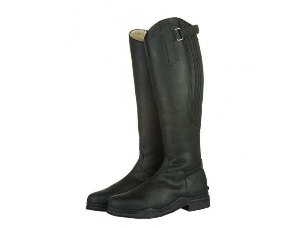 Zimní jezdecké boty Country od renomované značky HKM jsou vyrobeny z kvalitní měkké kůže a zatepleny hřejivou podšívkou, která chrání nohy i v těch nejchladnějších dnech. Díky vysokému střihu poskytují ochranu nejen chodidlům, ale i lýtkům. Vnitřní výstelka z umělého beránku a vodoodpudivý povrch zajistí komfort i při delším pobytu venku. Boty mají robustní protiskluzovou podrážku, která se osvědčí na mokrém i zmrzlém povrchu, vzadu zip. Elegantní country vzhled je vhodný jak do stáje, tak pro každodenní nošení.