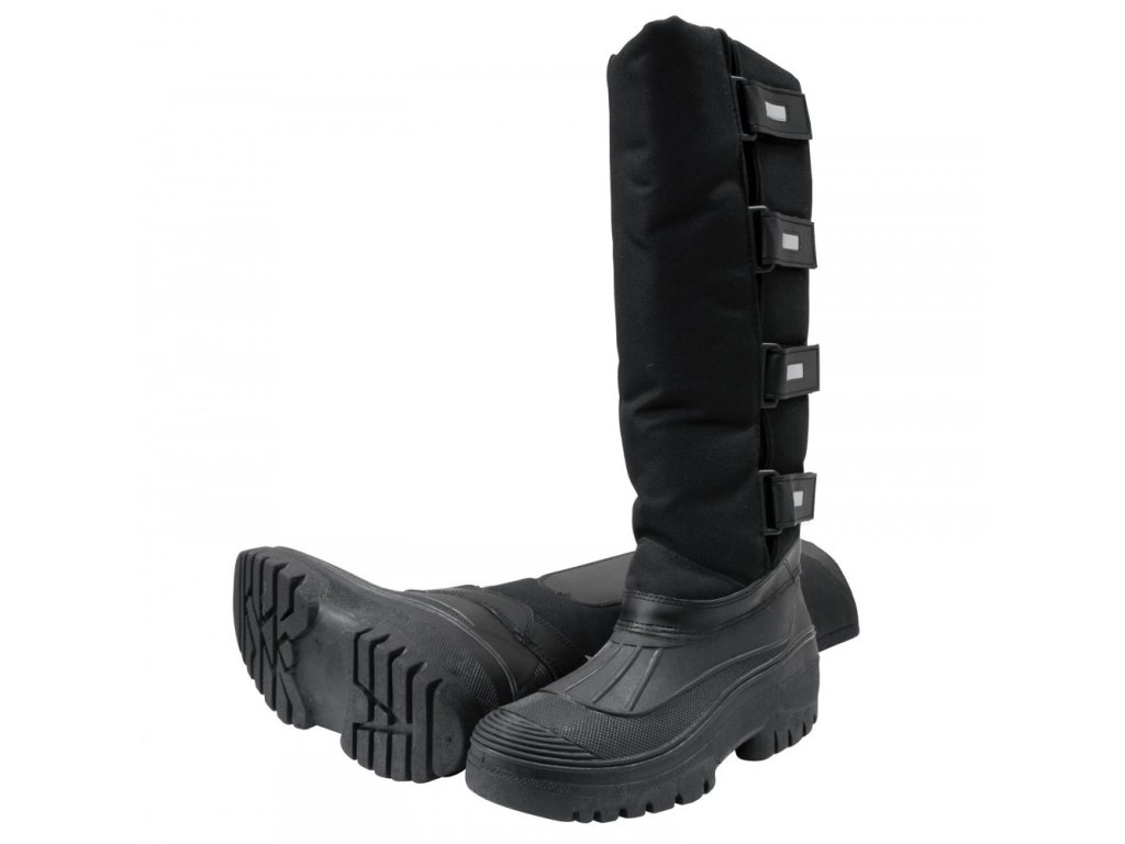 Tyto vysoké jezdecké termoboty nabízejí spolehlivou ochranu v zimních podmínkách. Spodní část z odolné nepromokavé gumy chrání proti vlhkosti a nečistotám, zatímco vnitřní kožíšek a měkká vložka zajišťují tepelný komfort. Vrchní díl je vyroben z tvarovaného, snadno udržovatelného materiálu. Zapínání na suché zipy je doplněno reflexními prvky pro lepší viditelnost. Boty jsou ideální pro každodenní práci u koní, ježdění i běžné nošení v zimě.