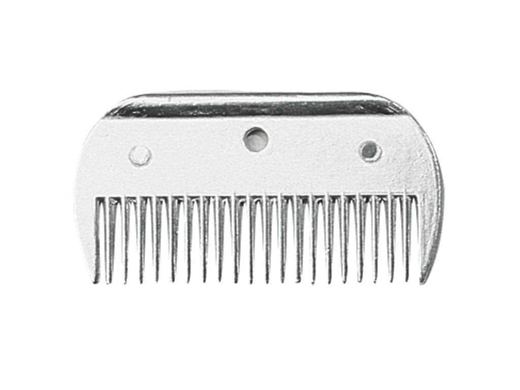Tento kovový hřeben o rozměrech 10 x 5,5 cm je praktický pomocník při péči o hřívu, ocas i srst koně. Díky pevné konstrukci a hustým kovovým zubům snadno rozčesává zacuchaná místa, pomáhá odstraňovat nečistoty a udržuje srst v dobré kondici.