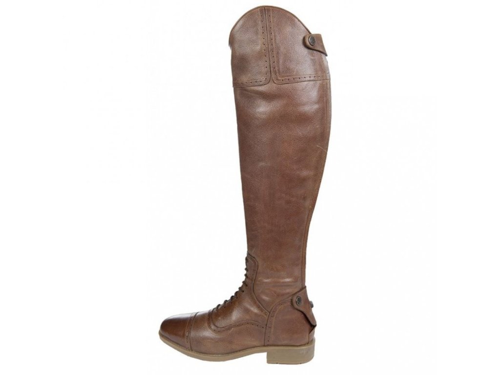 Jezdecké boty CARMONA od značky HKM nabízejí dokonalé spojení elegance a praktičnosti. Vyrobeny z kvalitní pravé kůže, vybavené elastickým dílem pro lepší přizpůsobení a zadním zipem zajištěným drukem. Měkké vnitřní polstrování a syntetická výplň poskytují komfort i při delším nošení. Díky rychlozapínání a tvarované protiskluzové podrážce s podpatkem je obouvání rychlé a bezpečné. Obuv je vhodná pro intenzivní jezdecké využití i oficiální příležitosti.