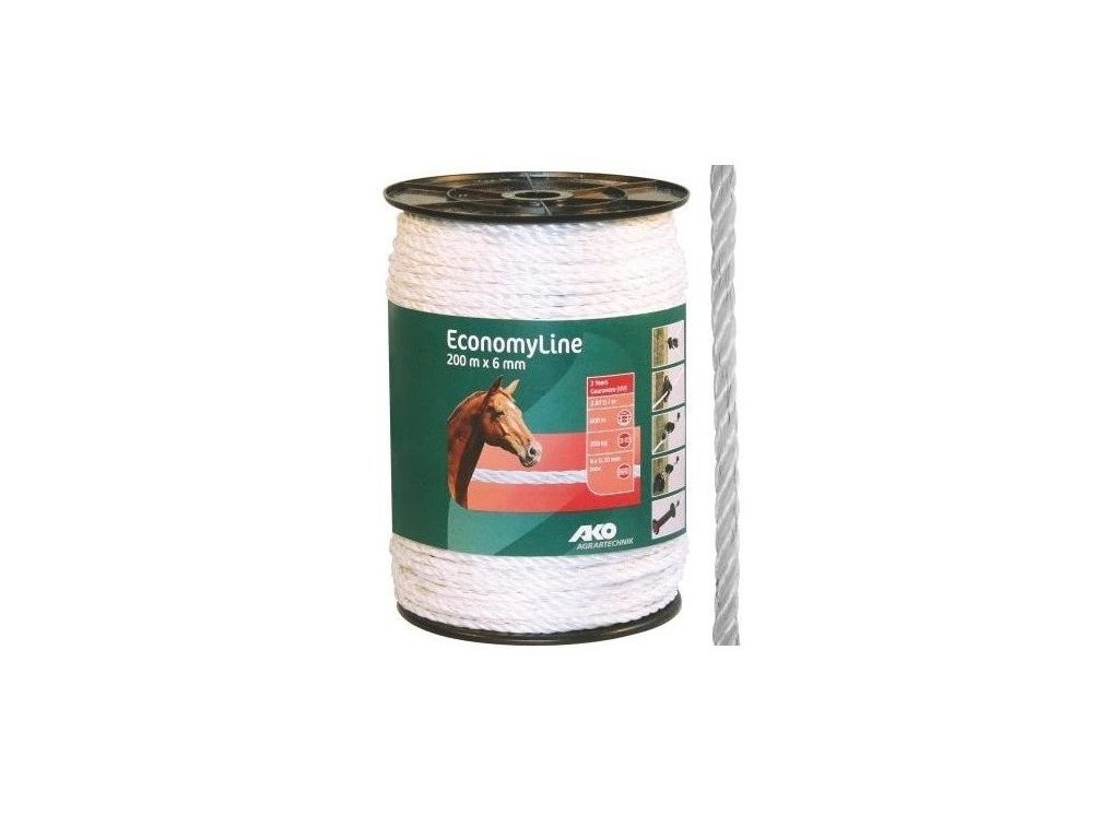 Lanko pro elektrický ohradník Economy Line - 6 mm, 200 m - bílá