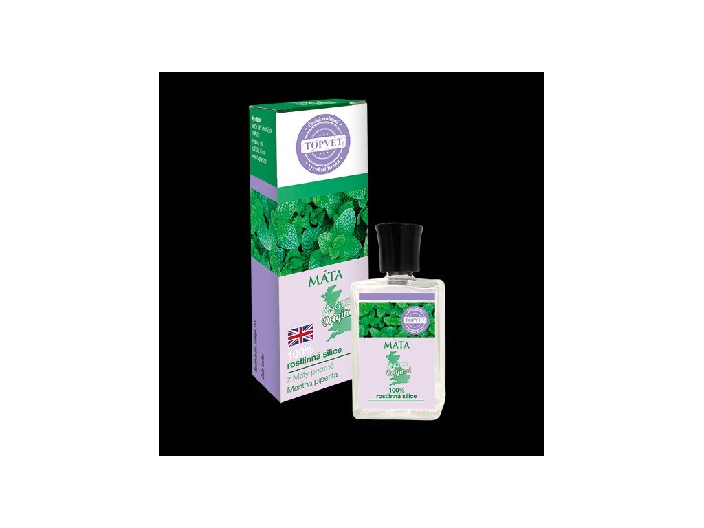Máta peprná - Anglie - 100% rostlinná silice z Máty peprné Mentha piperita Původ Máty peprné nalézáme v Anglii. Bylina obsahuje silice, ve kterých je více než 50% mentolu. Máta vykazuje antiseptické účinky a pomocí aromaterapie usnadňuje dýchání při nachlazení a obtížích horních cest dýchacích. Snižuje horečku, účinně působí při trávicích obtížích, nadýmání či křečích. Máta povzbuzuje vitalitu a napomáhá také při migrénách a nervovém vypětí. Napomáhá při: rýmě a obtížích horních cest dýchacích, trávicí potíže, bolesti hlavy, nervové vypětí, povzbuzuje vitalitu Složení: Máta peprná – 100% silice Skladování: Nevystavujte přímému slunci. Není vhodné pro děti do 3let. Neaplikujte na sliznice! Uchovejte v suchu při pokojové teplotě.