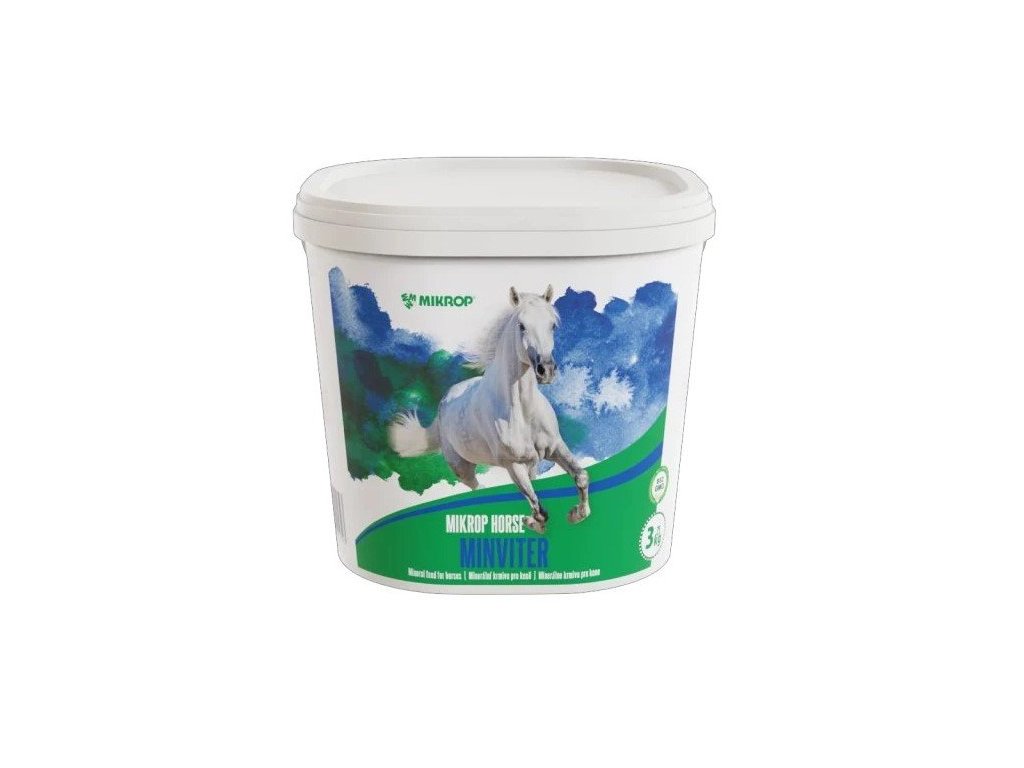 MIKROP® Horse Minviter je vyspěle formulovaný granulovaný doplněk obsahující organicky a anorganicky vázané minerály, vitamíny a esenciální aminokyseliny bez přidaného škrobu či cukru – vhodný i pro citlivé koně s metabolickými poruchami nebo žaludečními vředy. Produkt zlepšuje využití krmiv, podporuje obranyschopnost a přispívá ke zvýšení kondice. Obsahuje čistou minerálně‑vitaminovou směs s esenciálními aminokyselinami lysinem a methioninem pro podporu regenerace a svalového metabolismu.