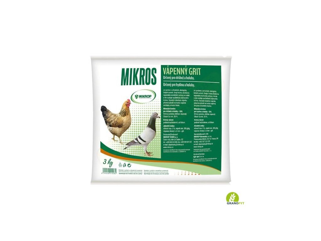 Minerální krmivo pro drůbež a holuby. Vyrobeno z přírodních, ekologicky čistých surovin. Svoji strukturou napomáhá rozmělnění potravy ve voleti a tím zvyšuje využitelnost příjmaného krmiva. Vysokým obsahem vápníku příznivě působí na tvorbu vaječné skořápky a kostní tkáně.