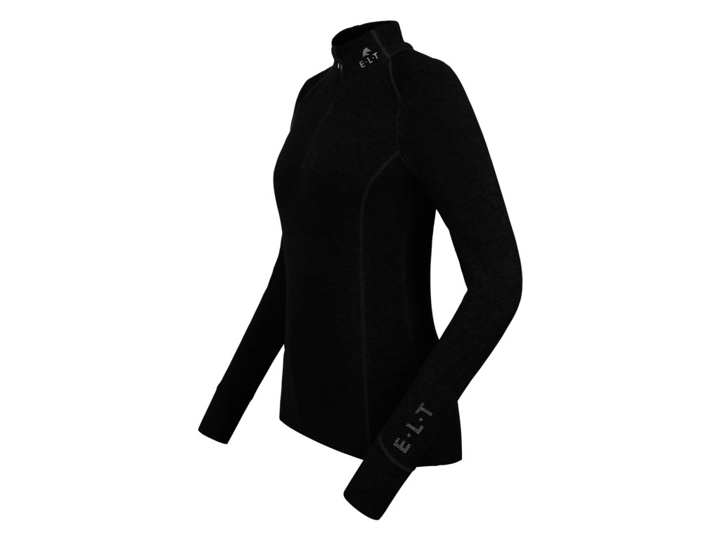 Módní funkční tričko s dlouhým rukávem, na zip - Přizpůsobený střih - Prodyšný funkční materiál - Výstřih se skrytým zipem vpředu - Ozdobná páska v oblasti krku - Vysoký límec s potiskem loga - Nápis E-L-T z ozdobných kamínků na rukávuMateriál: 88 % polyester, 12 % elastan.