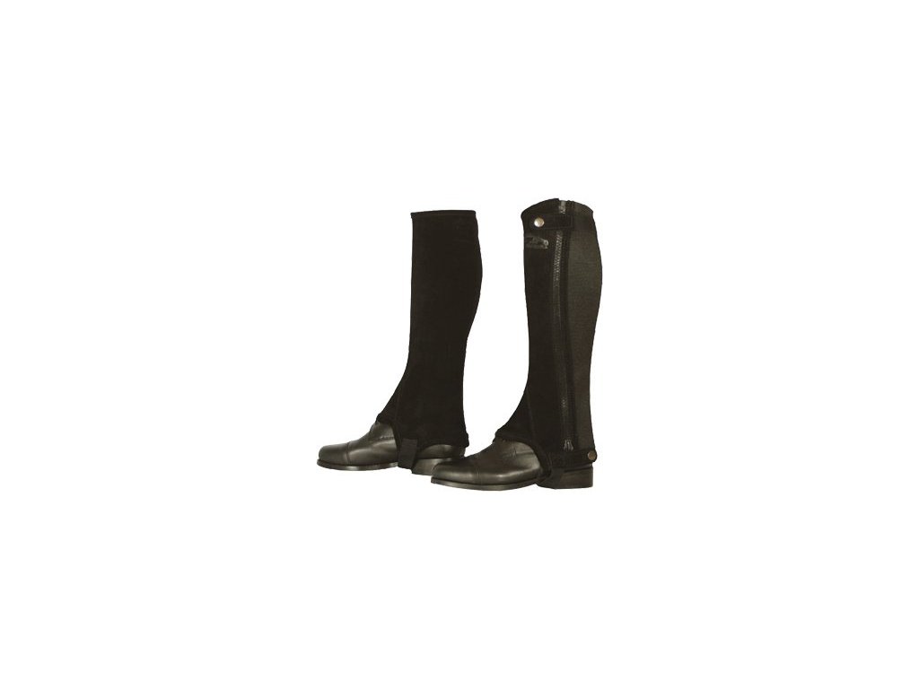Minichapsy Kentaur v irském střihu jsou vyrobeny z kvalitní velurové kůže a vybaveny elastickým klínem, který zajišťuje přiléhavé a pohodlné nošení. Zapínají se na boku na zip a fixují pomocí druků. Zpevněná oblast lýtka zaručuje dlouhou životnost i při intenzivním používání.