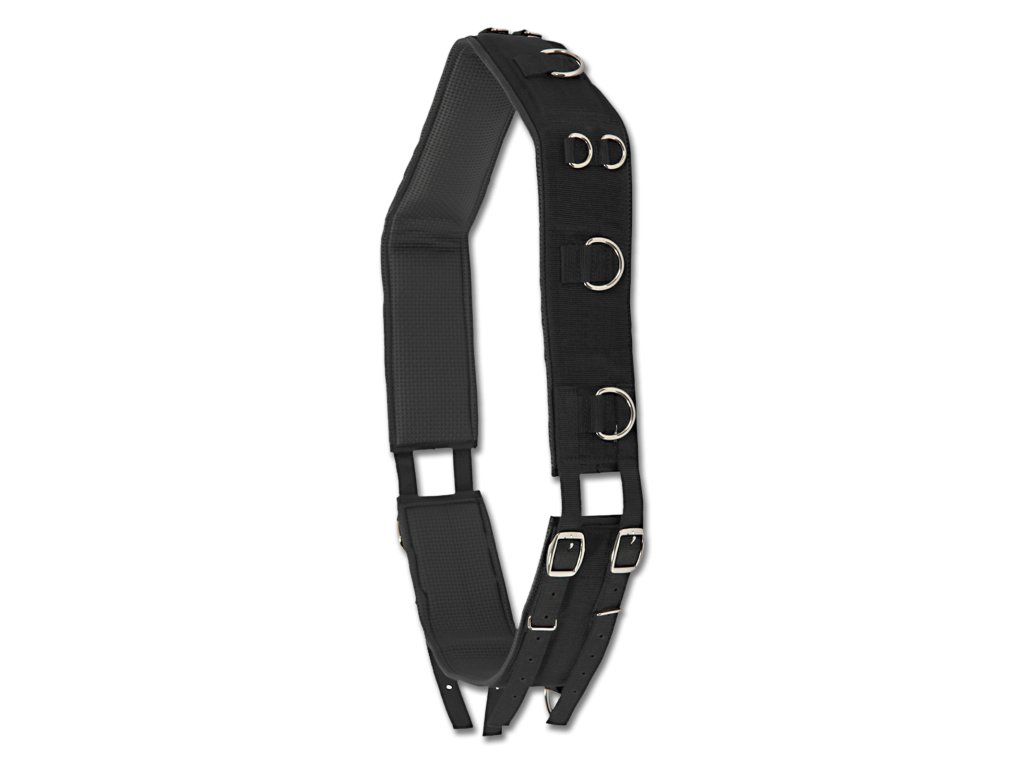 Lonžovací obřišník Waldhausen z pevného nylonu nabízí pohodlí i funkčnost při práci ze země. Díky 13 kovovým kroužkům umožňuje různé polohy pomocných otěží, čímž podporuje správné vedení koně při lonžování, včetně dvojité lonže. Měkká pěnová výstelka na vnitřní straně zajišťuje komfort a přilnavost bez odřenin. Obřišník je vhodný pro každodenní využití při výcviku a práci na kruhu.