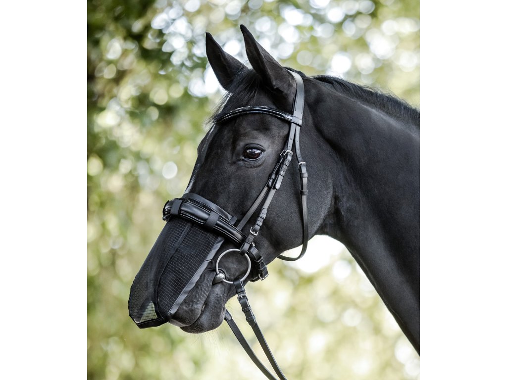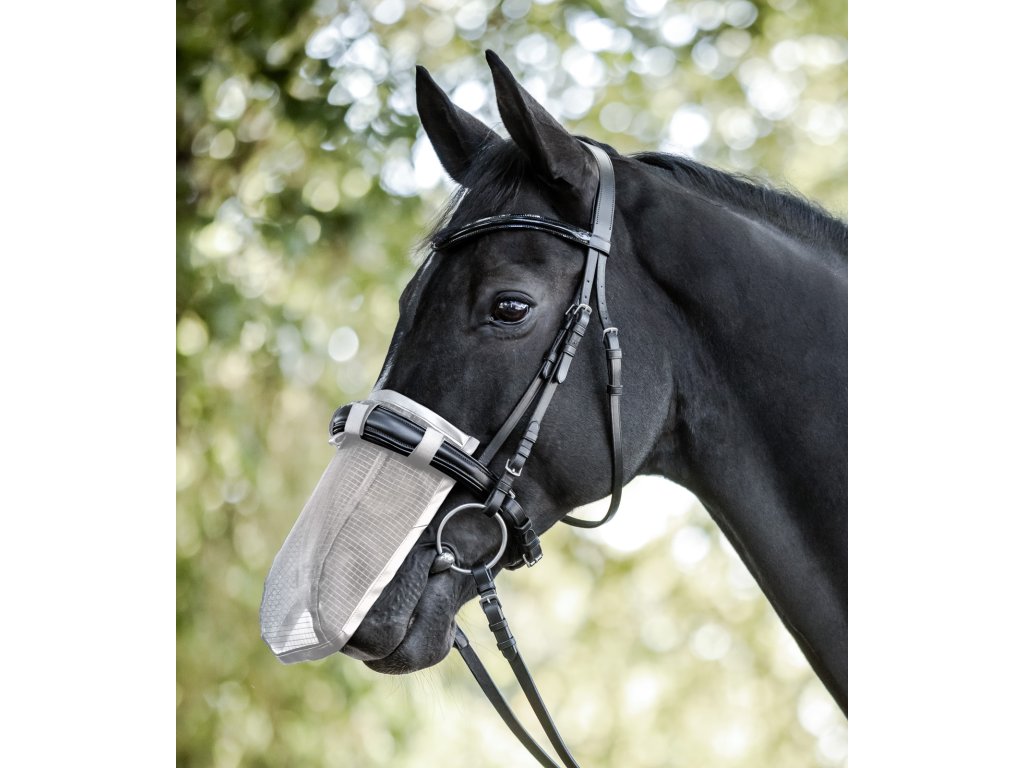 Maska se připevňuje k uzdečce nebo ohlávce pomocí suchého zipu a slouží k ochraně nosu koně před hmyzem a UV zářením. Vhodná pro každodenní použití, pastvu i ježdění. Lze prát v ruce.