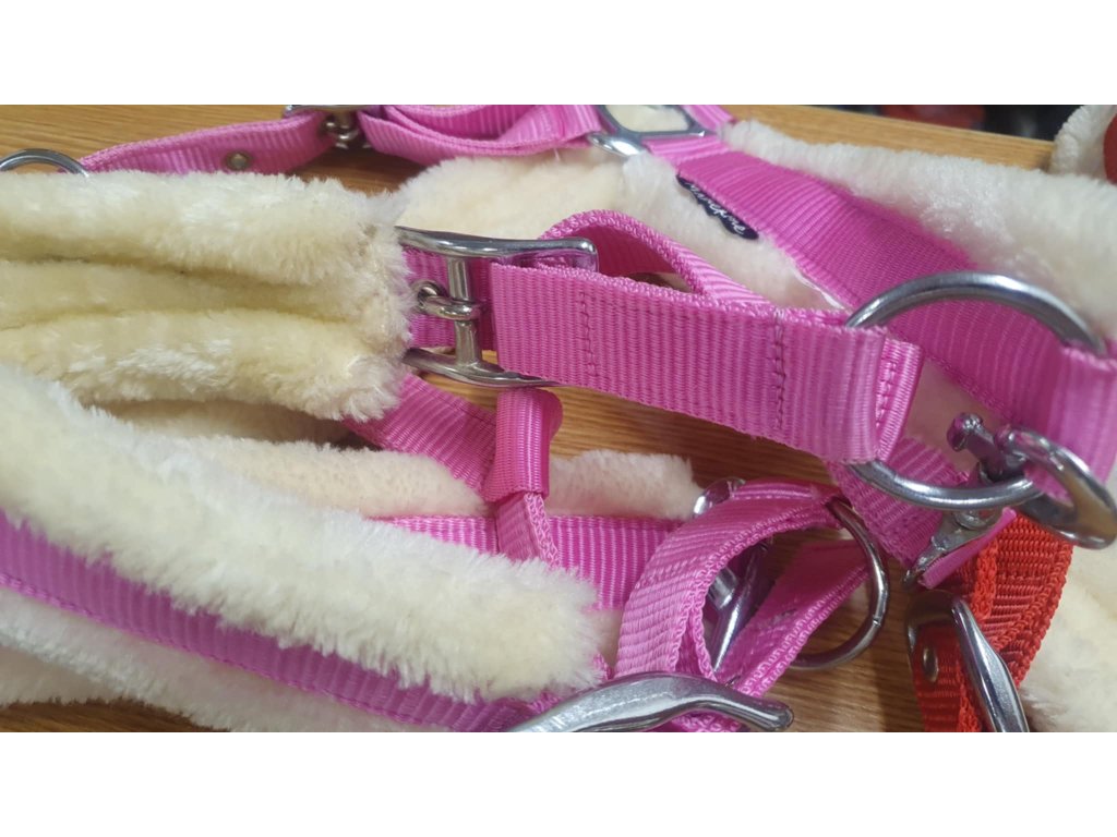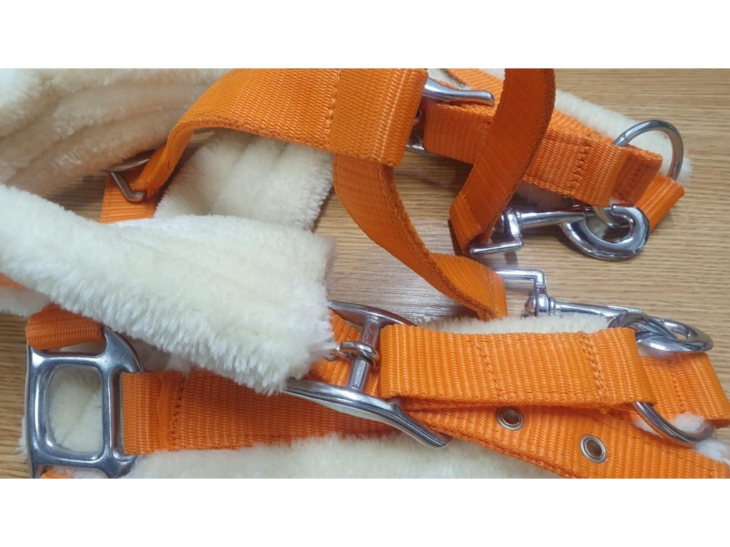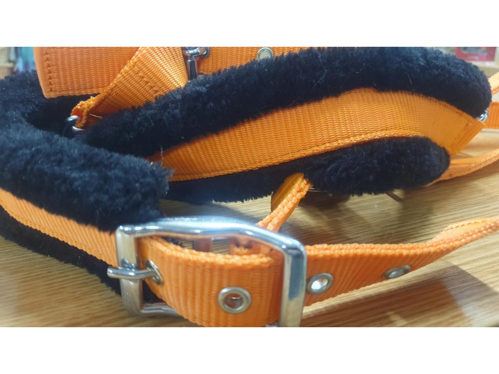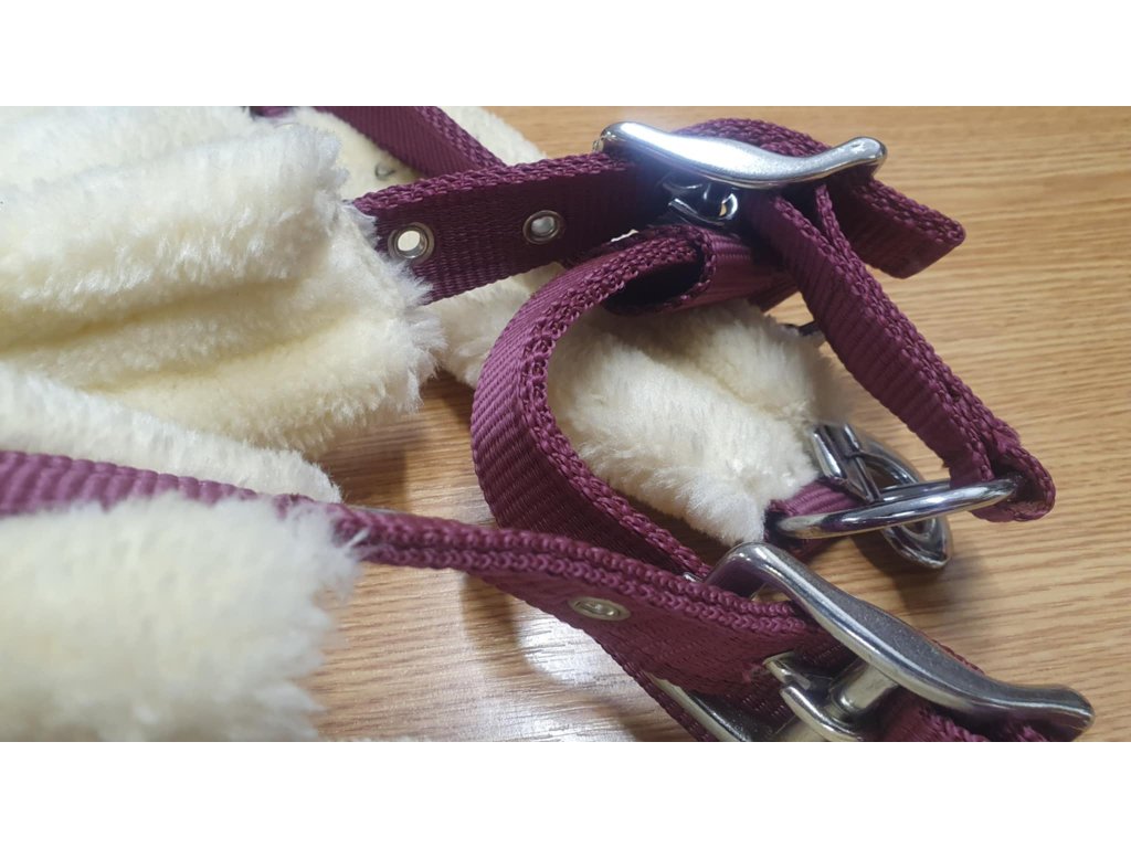 Klíčovým prvkem je měkké podloží z umělého beránku, které chrání citlivé oblasti hlavy před otlaky a odřením. Beránkové podložení je k dispozici v přírodní (bílé) nebo černé barvě, což umožňuje sladit ohlávku s barvou srsti koně nebo s ostatním vybavením. Barvu beránku prosím uveďte do poznámky v objednávce.