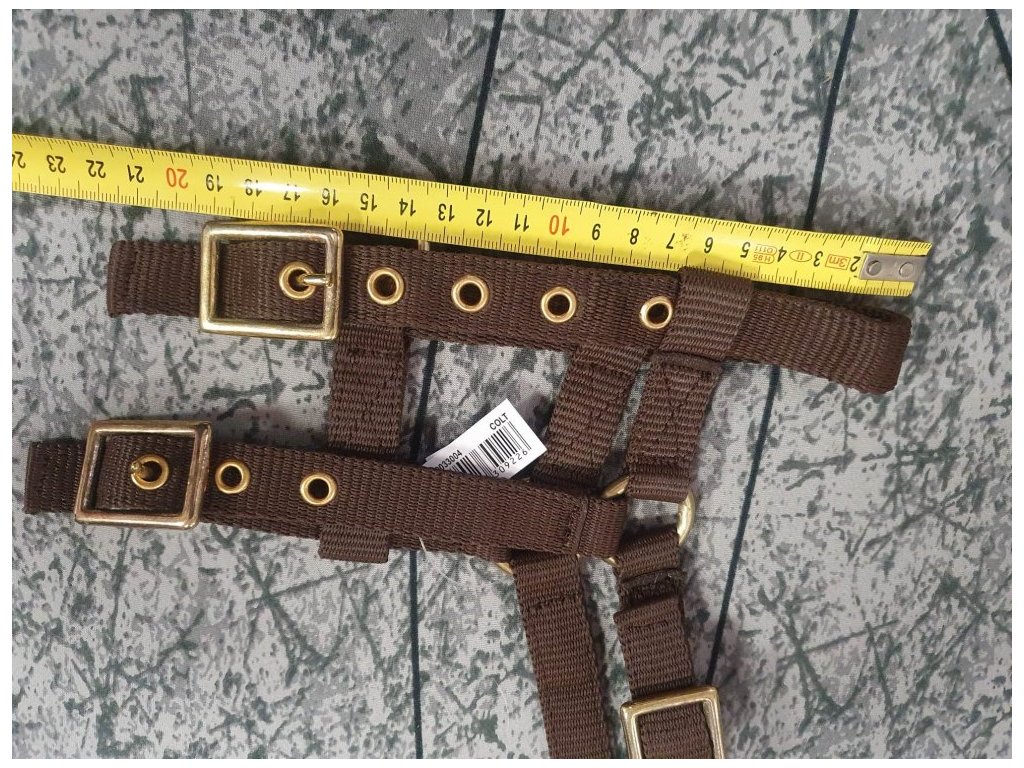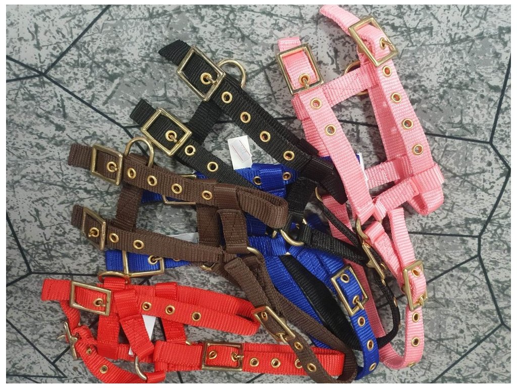 Nylonová ohlávka na hříbě minishetty, zlaté kování.Foto s rozměrem je foceno na nejvetším nastavení velikosti