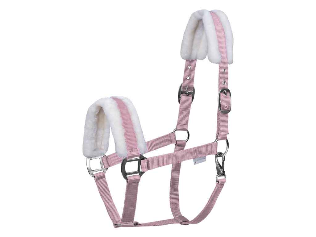 Chlupatá ohlávka s měkkým polstrováním ze syntetické kožešiny na ohlávce a nánosníku.