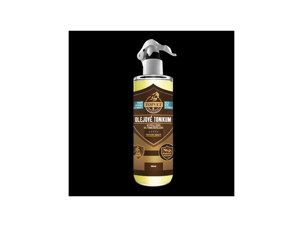 Olejové tonikum s repelentním účinkem 500 ml je účinná kombinace přírodních esenciálních olejů, která odpuzuje mouchy, ovády, komáry a další létající hmyz. Současně zvláčňuje pokožku a dodává srsti lesk bez mastného filmu. Tonikum se snadno nanáší, dobře se vstřebává a je šetrné i k citlivé kůži. Vhodné pro každodenní použití během pastvy, tréninku nebo vyjížděk. Při pravidelném používání pomáhá předcházet podráždění kůže způsobenému štípanci a otěrem. Tonikum podporuje celkový komfort koně v teplém období.