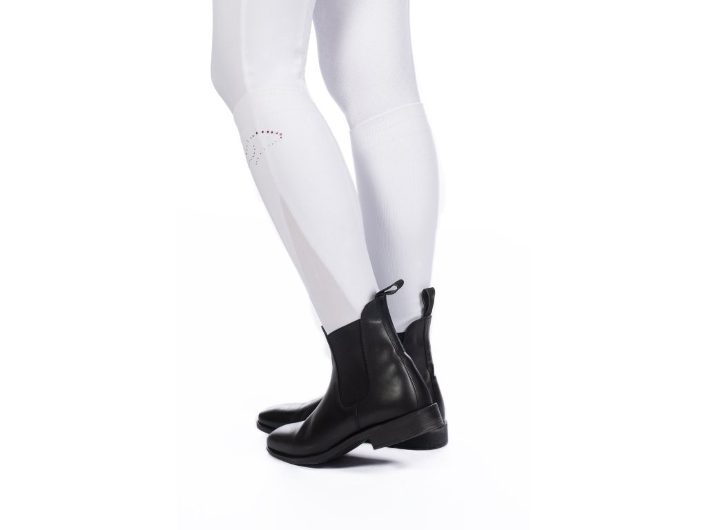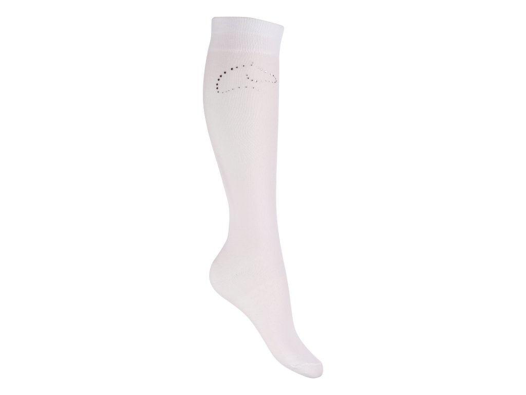 Podkolenky HKM TEAM bílé – nylonové s elastanem, ozdobné kamínky