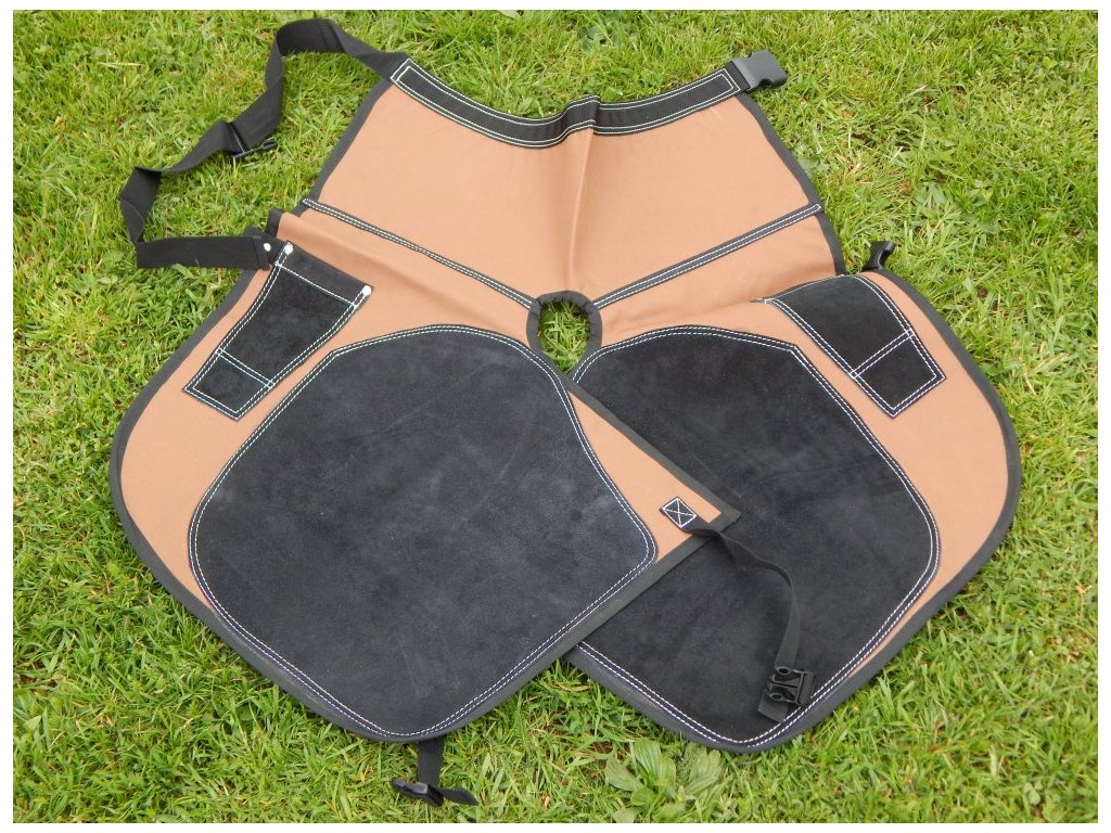 Podkovářská zástěra COMBI značky Mámekoně je navržena pro každodenní práci s koňmi. Spojuje výhody lehkého nylonu s ochranou, kterou poskytuje pevná kůže. Zástěra je vybavena nastavitelným zapínáním v pase a kolem stehen, díky čemuž dobře sedí a neomezuje pohyb. Praktické kapsy na bocích umožňují mít potřebné nářadí vždy po ruce. Barevné provedení v kombinaci světle hnědé a černé barvy působí profesionálně a elegantně.