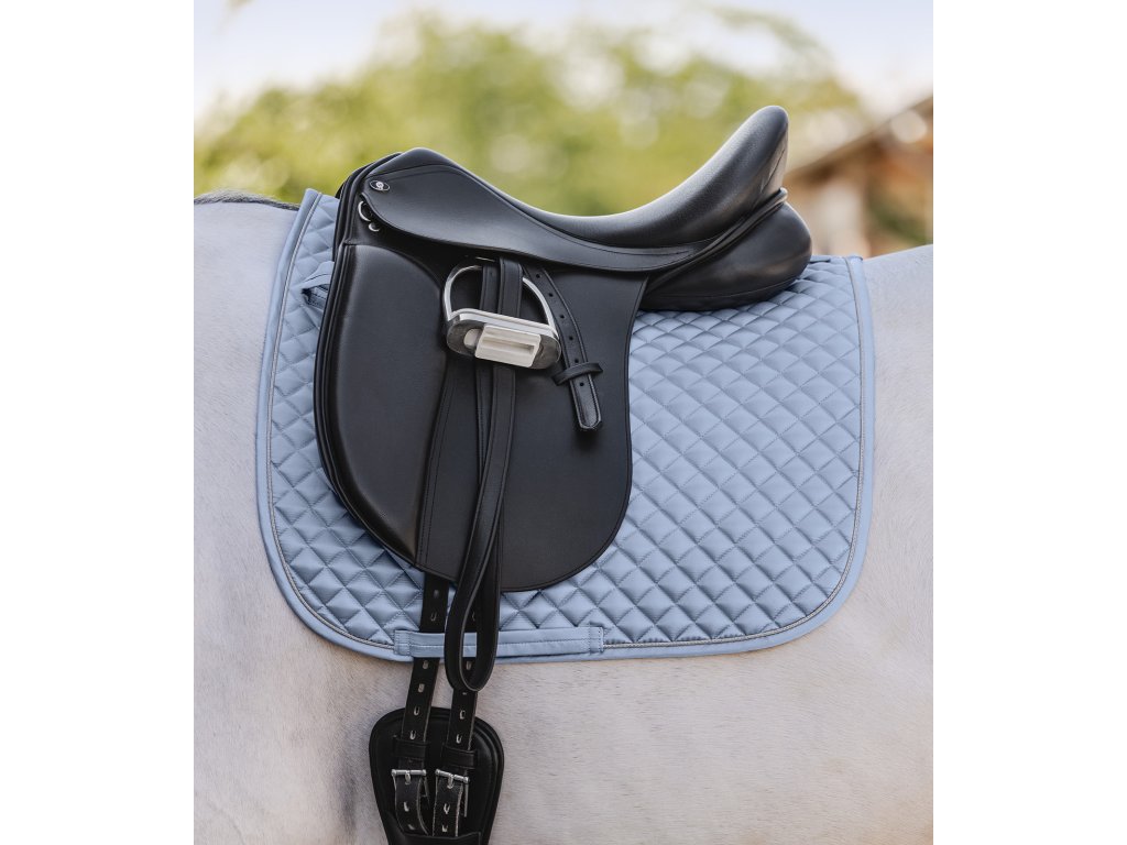 Nadčasová sedlová podložka v lesklém vzhledu s lesklou šňůrou. Dobrá prodyšnost a absorpce potu. Speciální pěna o tloušťce 15 mm má vyrovnávající tlak a tlumící účinek. vnější materiál: 100% polyester. Podšívka: 100% polyester. Výplň: pěna: 100% polyuretan.Doplňkové parametry
