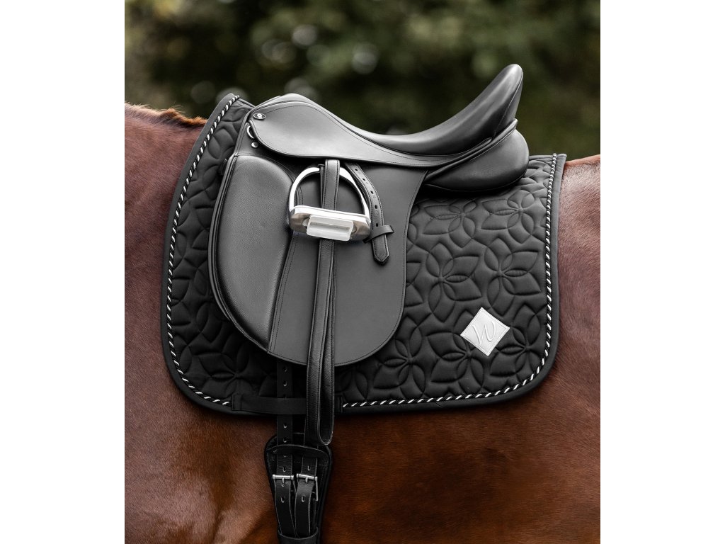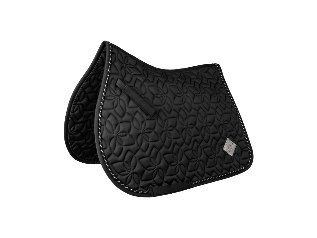 Elegantní sedlová podložka Marseille v černé barvě od značky Waldhausen vyniká květinovým vzorem a třpytivým logem „W“. Měkká výplň účinně tlumí nárazy a pohodlná podšívka zajišťuje komfort koně při ježdění. Funkční spodní strana optimalizuje cirkulaci vzduchu a zajišťuje suché prostředí pod sedlem.