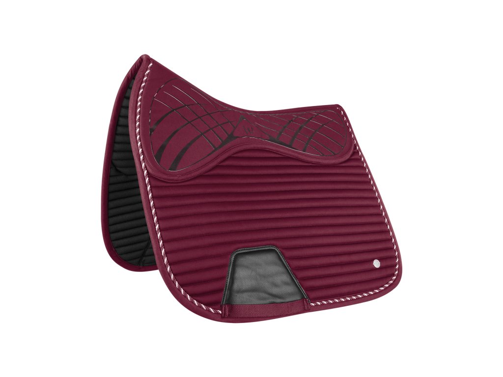 Podsedlová dečka Riga v sametově červeném provedení spojuje komfort s moderním vzhledem. Díky integrované pěnové výztuze a protiskluzovým silikonovým zónám poskytuje koni maximální pohodlí a zabraňuje nežádoucímu posuvu sedla. Oblast podbřišníku je zesílená pro delší životnost. Elegantní šňůrka a kovový štítek doplňují celkový design.