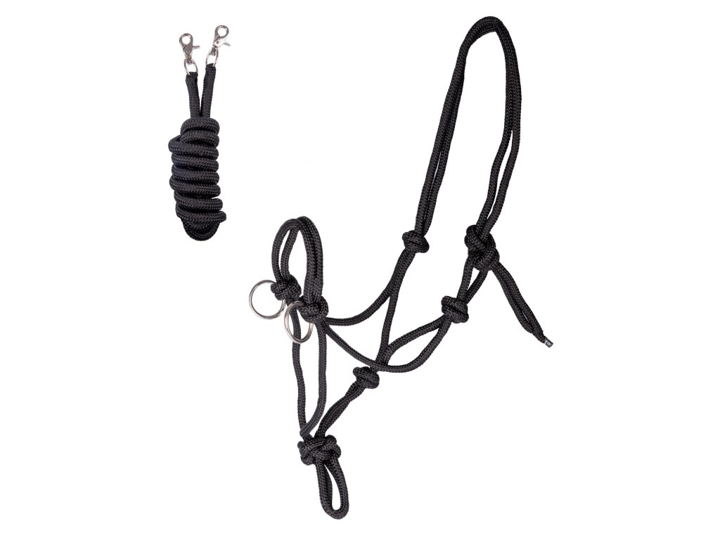 Provazová ohlávka s otěžemi Waldhausen - černá