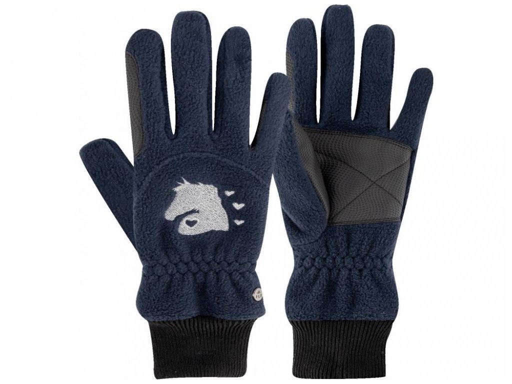 Teplé fleecové jezdecké rukavice se třpytivou výšivkou koně.