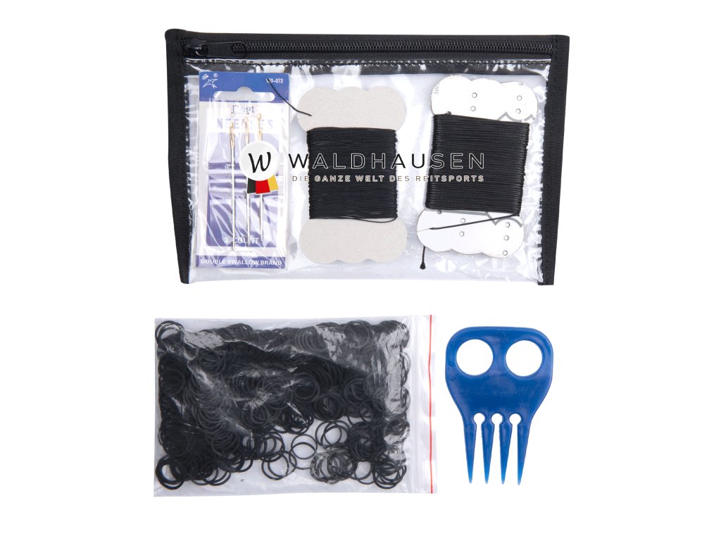 Ideální společník na výstavě. Sada na pletení hřívy Waldhausen se skládá z gumiček na hřívu, hřebenu na pletení, sady jehel, nůžek a speciální pletací příze. Sada je dodávána v atraktivní tašce.