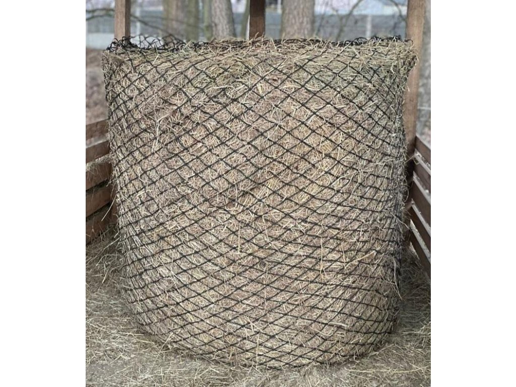 Síť na velké balíky sena do průměru 135cm - odzkoušeno. Na fotce je sít na balíku o průměru 125cm. Sít je z pevného a trvanlivého materiálu. Máme osobně odzkoušeno a spoustu spokojených zákazníků. Jen třeba dát pozor na to, aby se balík po odstranění původní sítě nebo provázku nezačal rozpadat - děje se často u málo slisovaných balíků. Rozměr 225 x 300cm, barva černá, velikost oka 6cm. Materiál: 100% Polyester nylon.Doplňkové parametry