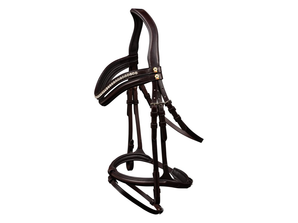 Uzdečka Waldhausen S-Line Harmony kombinuje funkčnost a luxusní vzhled. Anatomicky tvarovaný nátylník zajišťuje pohodlí i při delší práci. Uzdečka je vybavena dvěma vyměnitelnými čelenkami – hladká kožená a krystalová. Nánosník i čelenka jsou měkce polstrované. Kování z nerezové oceli je odolné a elegantní. Otěže nejsou součástí balení.