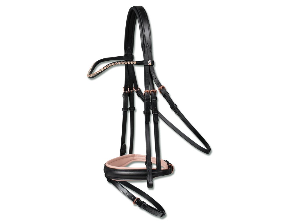 Uzdečka X-Line Rosé Waldhausen, černá/růžové kování, bez otěží