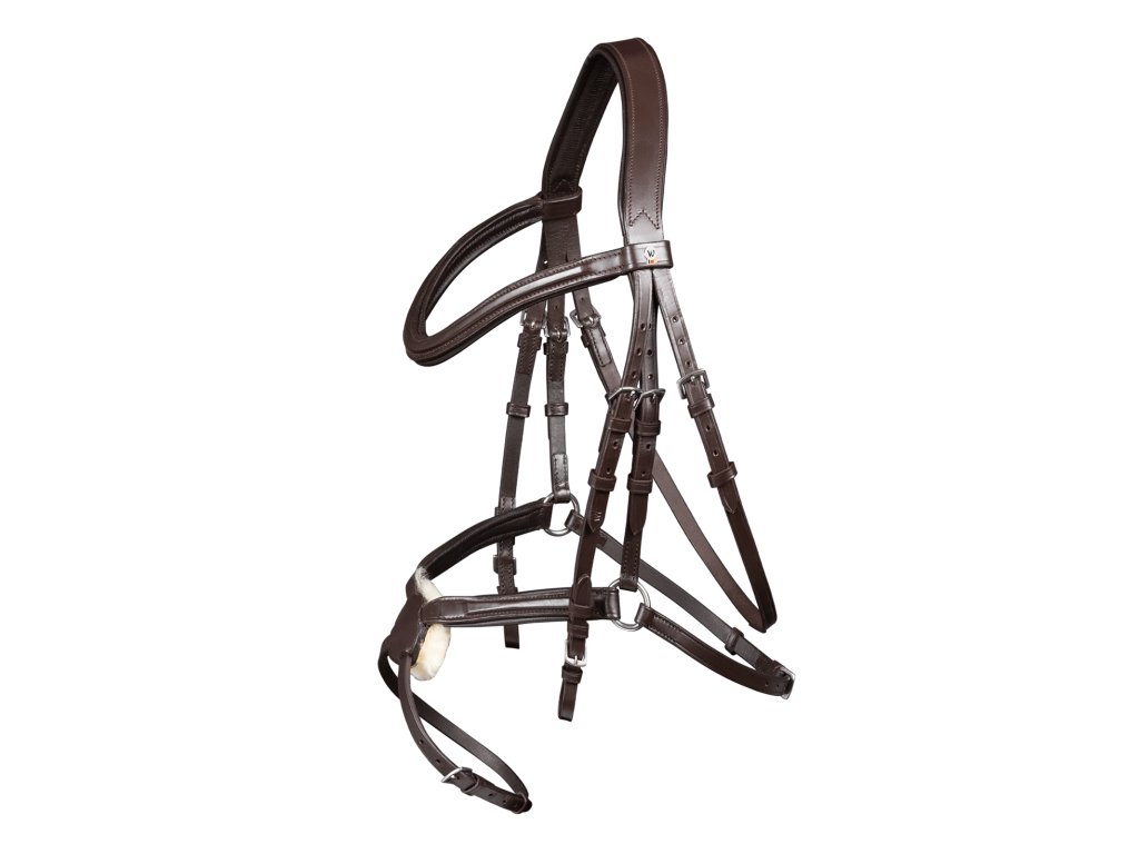 Uzdečka Waldhausen X-Line Standart vyniká funkčním designem a kvalitním zpracováním. Mexický nánosník s měkkým podložením zajišťuje stabilní usazení bez nepříjemného tlaku. Anatomicky tvarovaná čelenka se zkoseným tvarem a měkkým polstrováním poskytuje koni pohodlí i při delším nošení. Dodává se bez otěží.