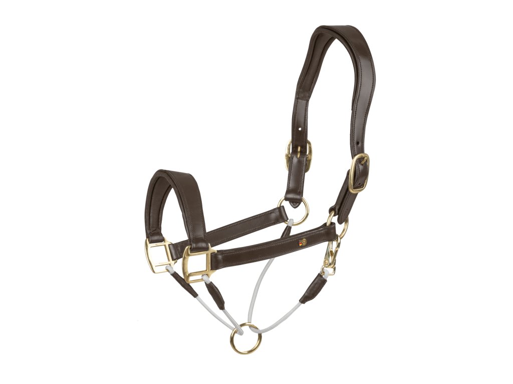 Hochwertiges Lederhalfter mit anatomisch geformtem Genickstück, beidseitig verstellbar. Nasenriemen und Genickstück sind weich gepolstert. Der Kehlriemen, sowie das hintere Stück des Nasenriemens sind aus edlem Seil. Beide Teile sind durch einen mitlaufenden Ring verbunden, dank diesem liegt es ruhig an und verrutscht nicht. Außerdem wird die Gefahr vom "in den Strick treten" umgangen.