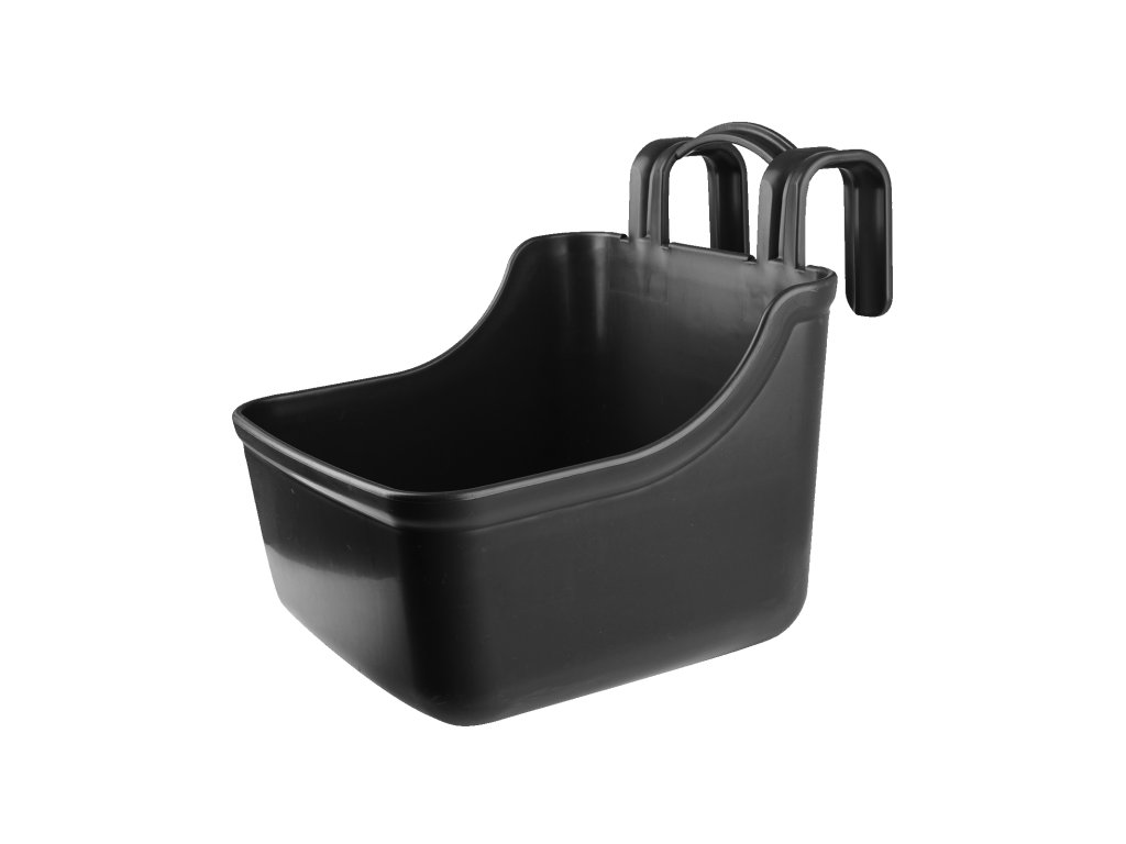 Tento praktický žlab je vyroben z odolného plastu, který zaručuje dlouhou životnost i při každodenním používání. S rukojetí pro komfortní přenášení a závěsným mechanismem pro snadné upevnění. Zaoblené rohy usnadňují čištění a hygienu. Vhodný pro krmení nebo napájení koní, použitelný ve stáji, na vozíku i na závodech.